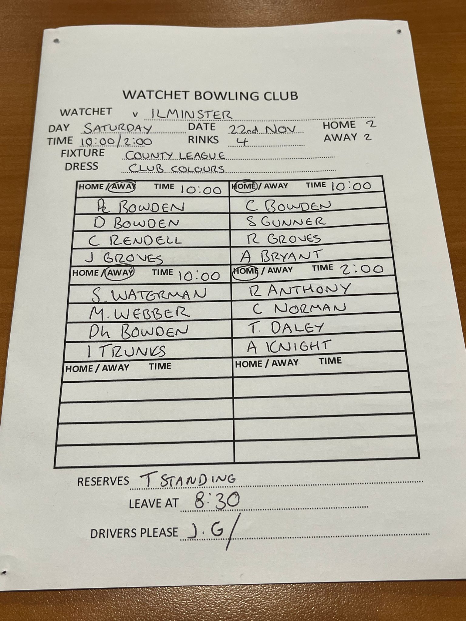 CLUB TEAM SHEETS